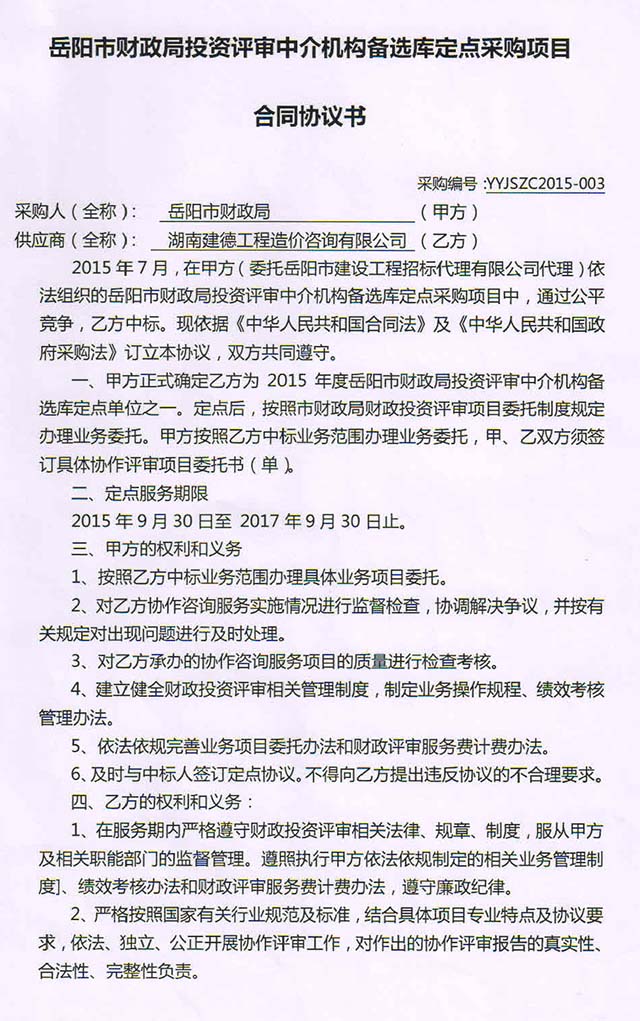 我公司成功入圍2015年-2017年度岳陽市財政局投資評審中介機構(gòu)備選庫定點采購名單